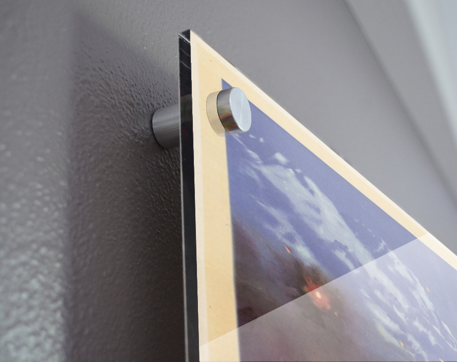 Printed to the edge - Ready to hang - provided with 4 premium polished aluminum stand off ( wall screws and mounting hardware provided )