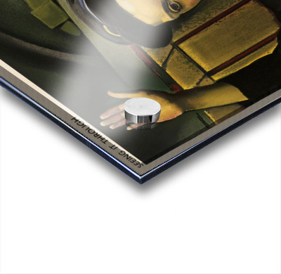 Printed to the edge - Ready to hang - provided with 4 premium polished aluminum stand off ( wall screws and mounting hardware provided )