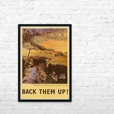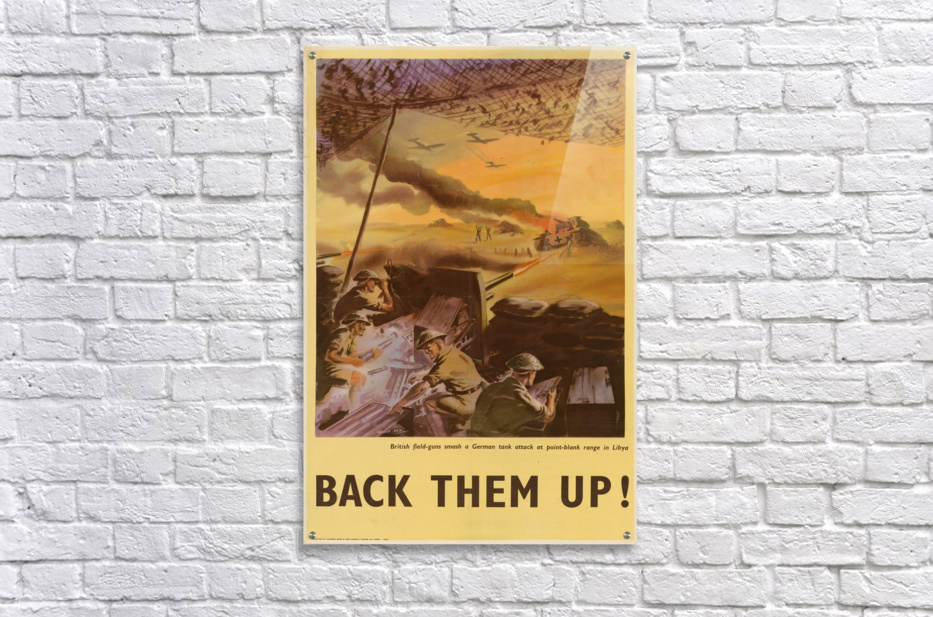 Get this artwork "British Field-Guns Smash a German Tank Attack at Point-Blank Range in Libya – Back Them Up!" in a framed print.