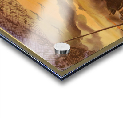 Printed to the edge - Ready to hang - provided with 4 premium polished aluminum stand off ( wall screws and mounting hardware provided )