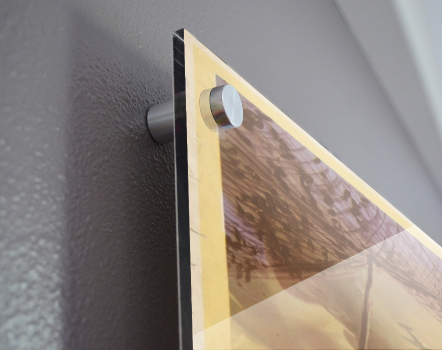 Printed to the edge - Ready to hang - provided with 4 premium polished aluminum stand off ( wall screws and mounting hardware provided ) We suggest a thicker 3/16" acrylic for any size over 42 inches to guarantee a straight acrylic, without curvature