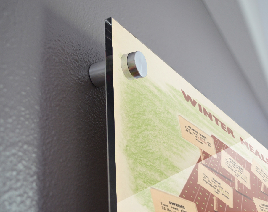 Printed to the edge - Ready to hang - provided with 4 premium polished aluminum stand off ( wall screws and mounting hardware provided ) We suggest a thicker 3/16" acrylic for any size over 42 inches to guarantee a straight acrylic, without curvature