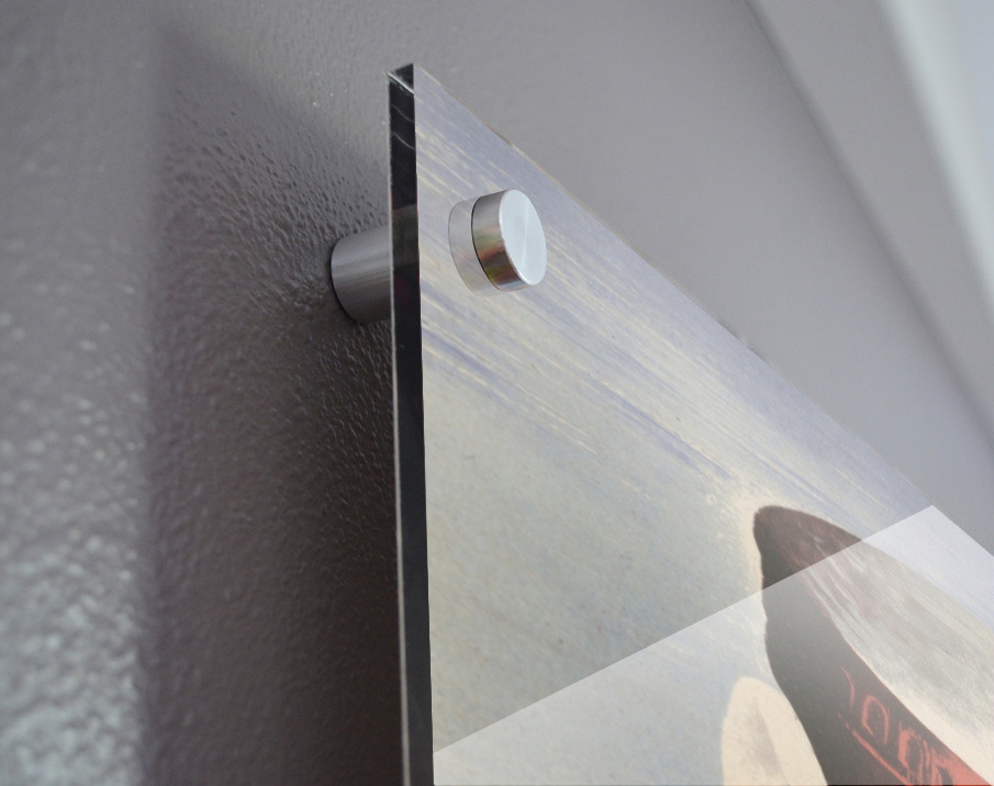 Printed to the edge - Ready to hang - provided with 4 premium polished aluminum stand off ( wall screws and mounting hardware provided ) We suggest a thicker 3/16" acrylic for any size over 42 inches to guarantee a straight acrylic, without curvature