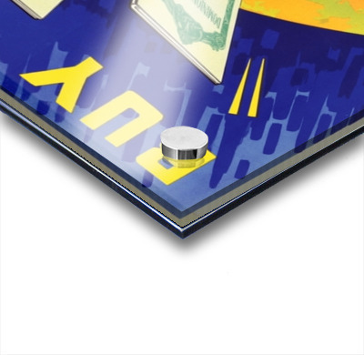 Printed to the edge - Ready to hang - provided with 4 premium polished aluminum stand off ( wall screws and mounting hardware provided )
