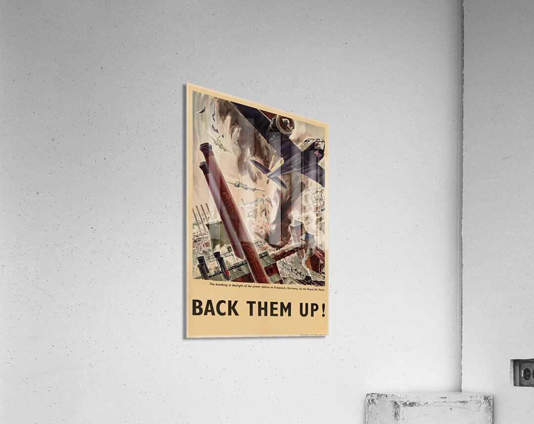 Get this artwork "The Bombing in Daylight of the Power Station at Knapsack Germany by the Royal Air Force – Back Them Up!" in a framed print.