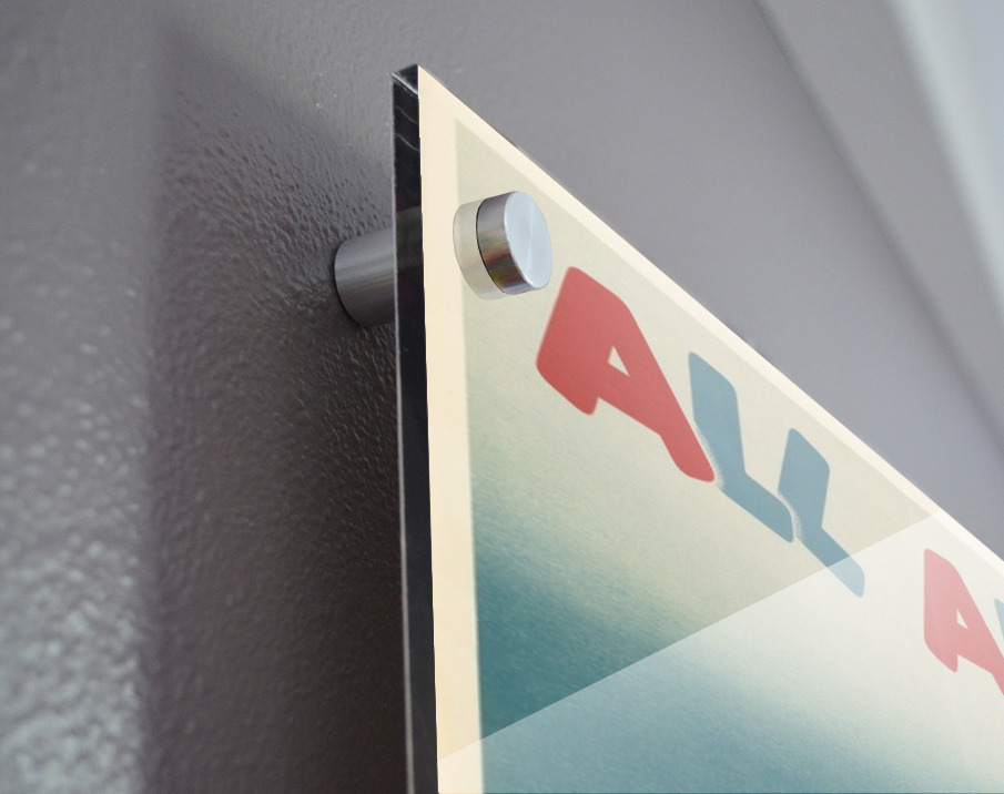 Printed to the edge - Ready to hang - provided with 4 premium polished aluminum stand off ( wall screws and mounting hardware provided )