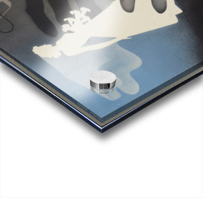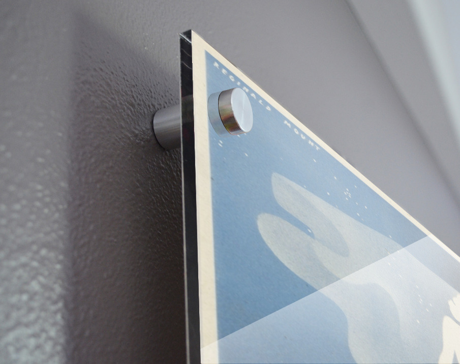 Printed to the edge - Ready to hang - provided with 4 premium polished aluminum stand off ( wall screws and mounting hardware provided ) We suggest a thicker 3/16" acrylic for any size over 42 inches to guarantee a straight acrylic, without curvature