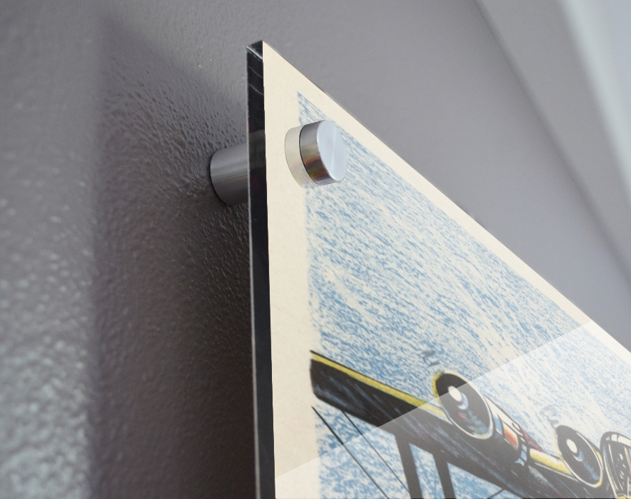 Printed to the edge - Ready to hang - provided with 4 premium polished aluminum stand off ( wall screws and mounting hardware provided ) We suggest a thicker 3/16" acrylic for any size over 42 inches to guarantee a straight acrylic, without curvature