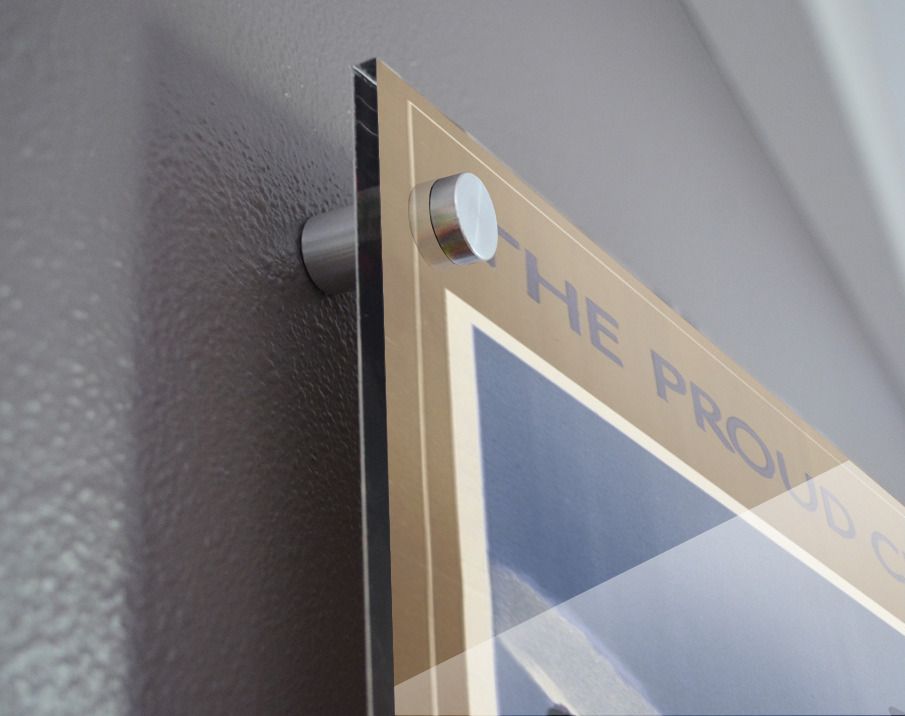 Printed to the edge - Ready to hang - provided with 4 premium polished aluminum stand off ( wall screws and mounting hardware provided ) We suggest a thicker 3/16" acrylic for any size over 42 inches to guarantee a straight acrylic, without curvature