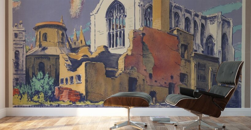 The Proud City – The Temple Church and Library After Bombardment  Wood print