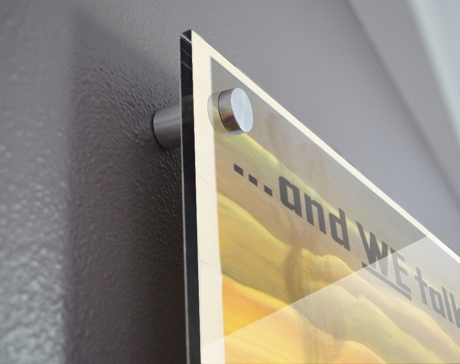 Printed to the edge - Ready to hang - provided with 4 premium polished aluminum stand off ( wall screws and mounting hardware provided )