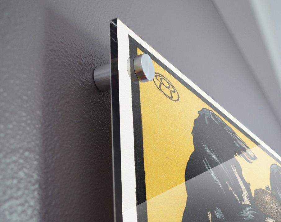 Printed to the edge - Ready to hang - provided with 4 premium polished aluminum stand off ( wall screws and mounting hardware provided ) We suggest a thicker 3/16" acrylic for any size over 42 inches to guarantee a straight acrylic, without curvature