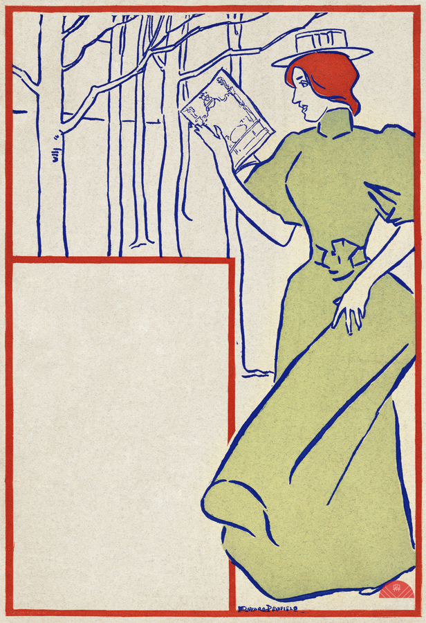 Get this artwork "Woman in green dress reading a book 1895 by Edward Penfield" in a framed print.