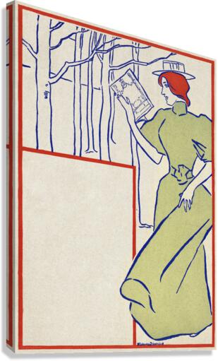 Woman in green dress reading a book 1895 by Edward Penfield Canvas print