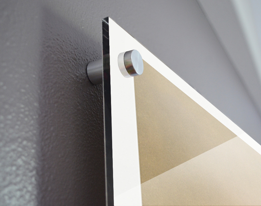 Printed to the edge - Ready to hang - provided with 4 premium polished aluminum stand off ( wall screws and mounting hardware provided ) We suggest a thicker 3/16" acrylic for any size over 42 inches to guarantee a straight acrylic, without curvature