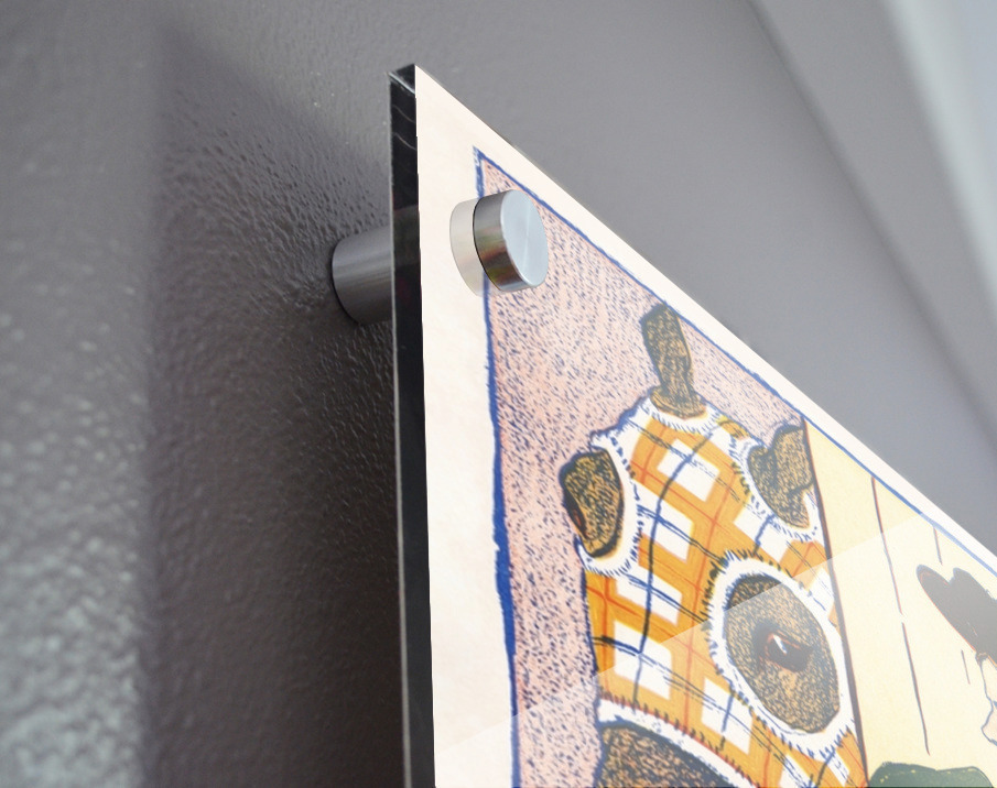 Printed to the edge - Ready to hang - provided with 4 premium polished aluminum stand off ( wall screws and mounting hardware provided ) We suggest a thicker 3/16" acrylic for any size over 42 inches to guarantee a straight acrylic, without curvature