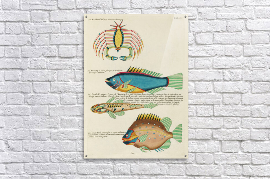 Get this artwork "Colourful and surreal illustrations of fishes and crab found in Moluccas Indonesia and the East Indies by Louis Renard 1678 -1746 from Histoire naturelle des plus rares curiositez de la mer des Indes 1754." in a framed print.