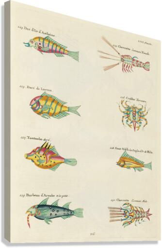 Colourful and surreal illustrations of fishes lobsters and crab found in Moluccas Indonesia and the East Indies by Louis Renard 1678 -1746 from Histoire naturelle des plus rares curiositez de la mer des Indes 1754. Canvas print