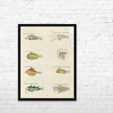 Get this artwork "Colourful and surreal illustrations of fishes lobsters and crab found in Moluccas Indonesia and the East Indies by Louis Renard 1678 -1746 from Histoire naturelle des plus rares curiositez de la mer des Indes 1754." in a framed print.