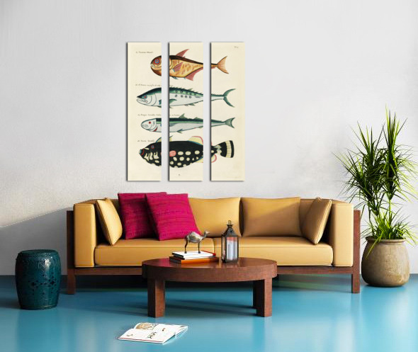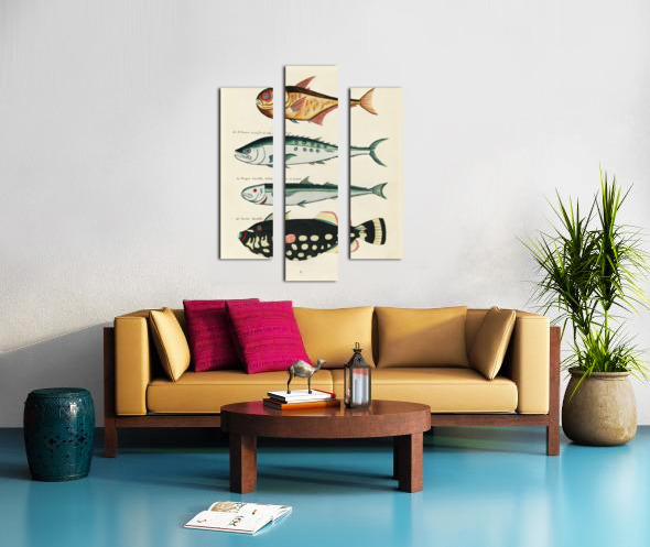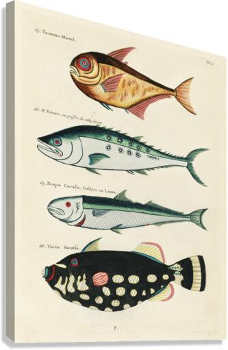 Colourful and surreal illustrations of fishes found in Moluccas Indonesia and the East Indies by Louis Renard 1678 -1746 from Histoire naturelle des plus rares curiositez de la mer des Indes 1754. Canvas print