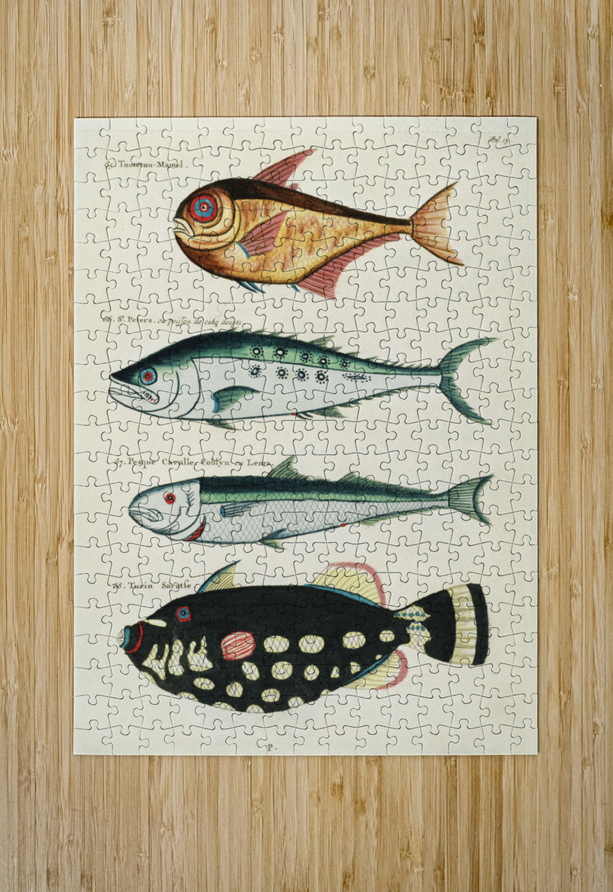 Colourful and surreal illustrations of fishes found in Moluccas Indonesia and the East Indies by Louis Renard 1678 -1746 from Histoire naturelle des plus rares curiositez de la mer des Indes 1754. IStockHistory com Puzzle