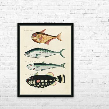 Colourful and surreal illustrations of fishes found in Moluccas Indonesia and the East Indies by Louis Renard 1678 -1746 from Histoire naturelle des plus rares curiositez de la mer des Indes 1754. Picture Frame Printing