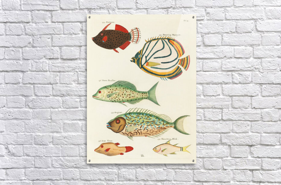 Get this artwork "Colourful and surreal illustrations of fishes found in Moluccas Indonesia and the East Indies by Louis Renard 1678 -1746 from Histoire naturelle des plus rares curiositez de la mer des Indes 1754." in a framed print.