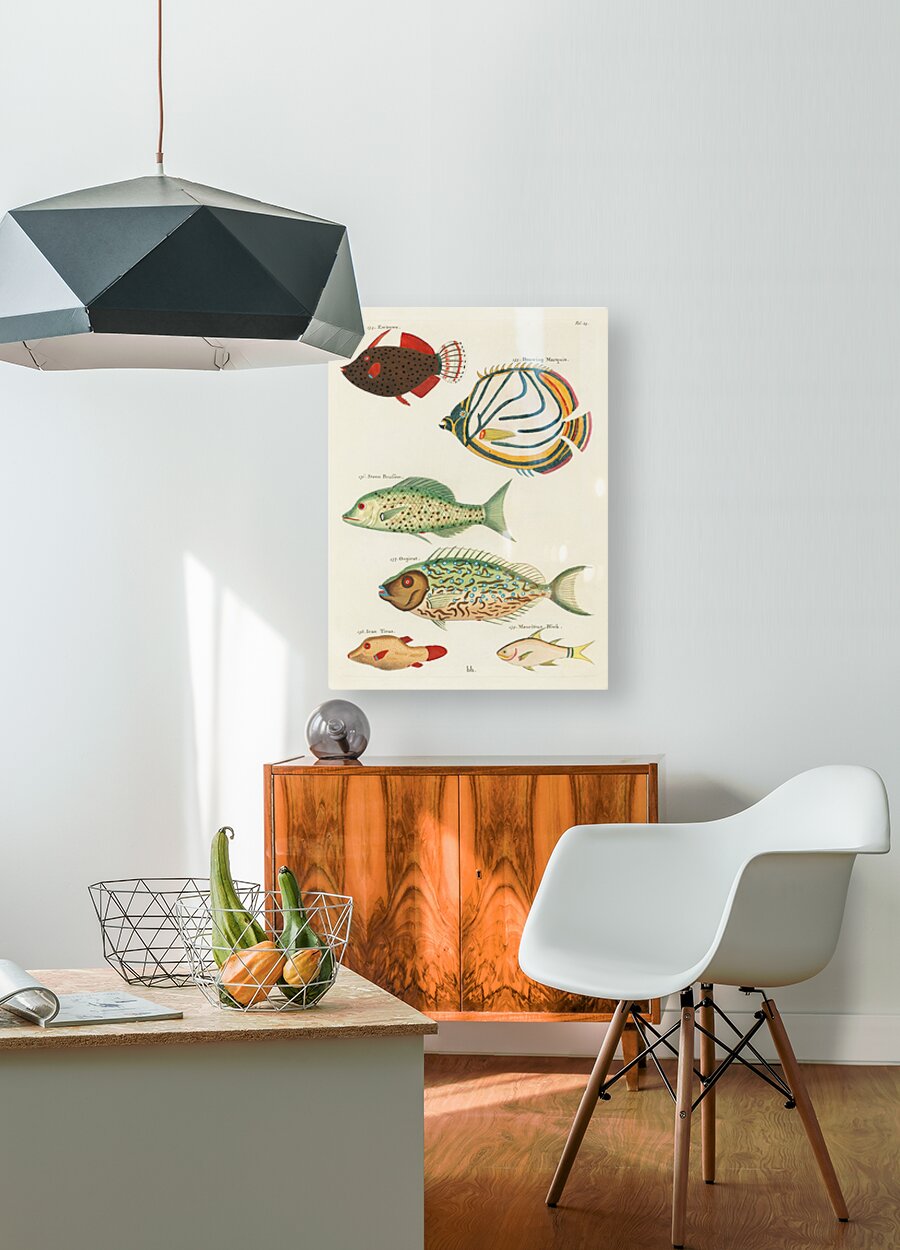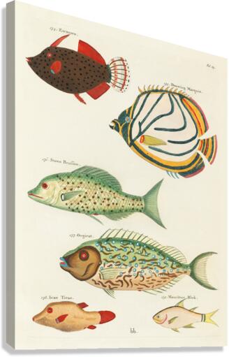 Colourful and surreal illustrations of fishes found in Moluccas Indonesia and the East Indies by Louis Renard 1678 -1746 from Histoire naturelle des plus rares curiositez de la mer des Indes 1754. Canvas print