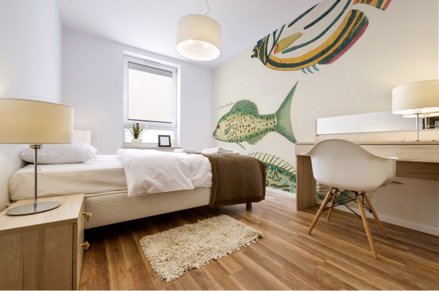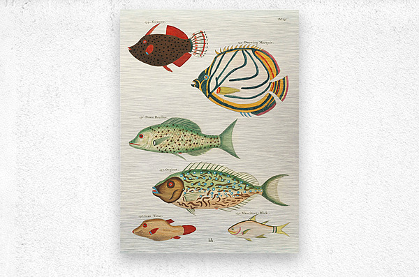 ABOUT THIS ARTWORK: COLOURFUL AND SURREAL ILLUSTRATIONS OF FISHES FOUND IN MOLUCCAS INDONESIA AND THE EAST INDIES BY LOUIS RENARD 1678 -1746 FROM HISTOIRE NATURELLE DES PLUS RARES CURIOSITEZ DE LA MER DES INDES 1754.
