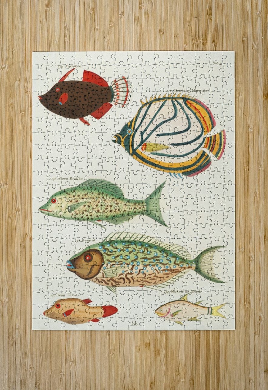 Colourful and surreal illustrations of fishes found in Moluccas Indonesia and the East Indies by Louis Renard 1678 -1746 from Histoire naturelle des plus rares curiositez de la mer des Indes 1754. IStockHistory com Puzzle