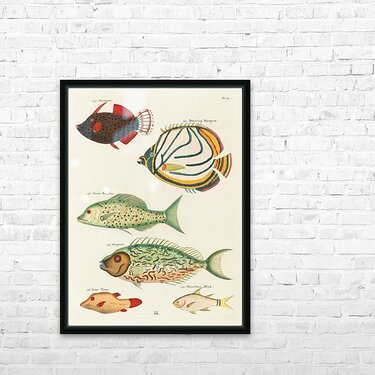Colourful and surreal illustrations of fishes found in Moluccas Indonesia and the East Indies by Louis Renard 1678 -1746 from Histoire naturelle des plus rares curiositez de la mer des Indes 1754. Picture Frame Printing