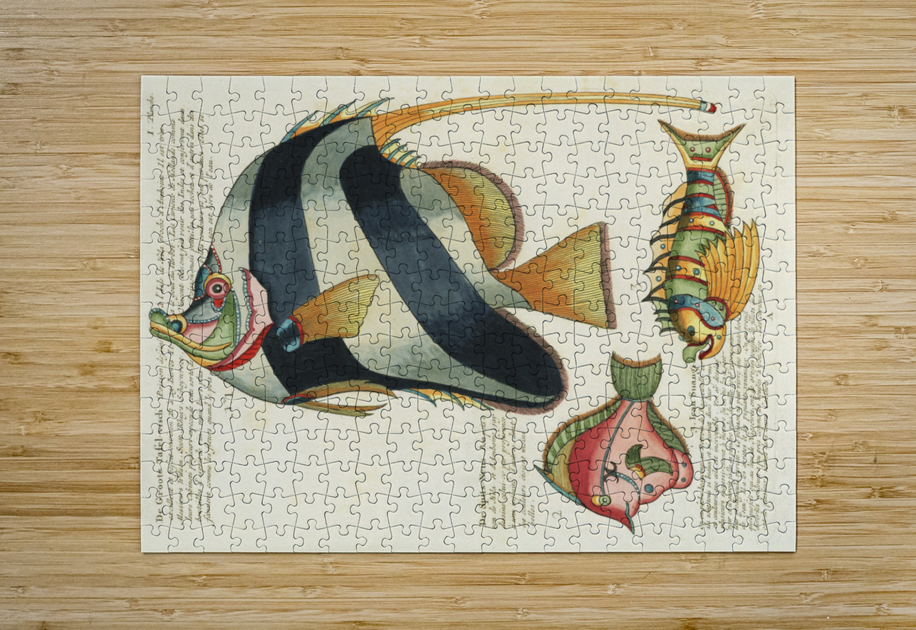 Colourful and surreal illustrations of fishes found in Moluccas Indonesia and the East Indies by Louis Renard 1678 -1746 from Histoire naturelle des plus rares curiositez de la mer des Indes 1754. IStockHistory com Puzzle