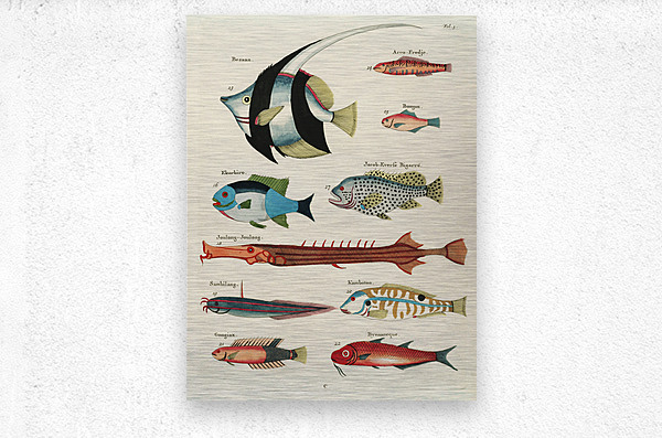 ABOUT THIS ARTWORK: COLOURFUL AND SURREAL ILLUSTRATIONS OF FISHES FOUND IN MOLUCCAS INDONESIA AND THE EAST INDIES BY LOUIS RENARD 1678 -1746 FROM HISTOIRE NATURELLE DES PLUS RARES CURIOSITEZ DE LA MER DES INDES 1754.