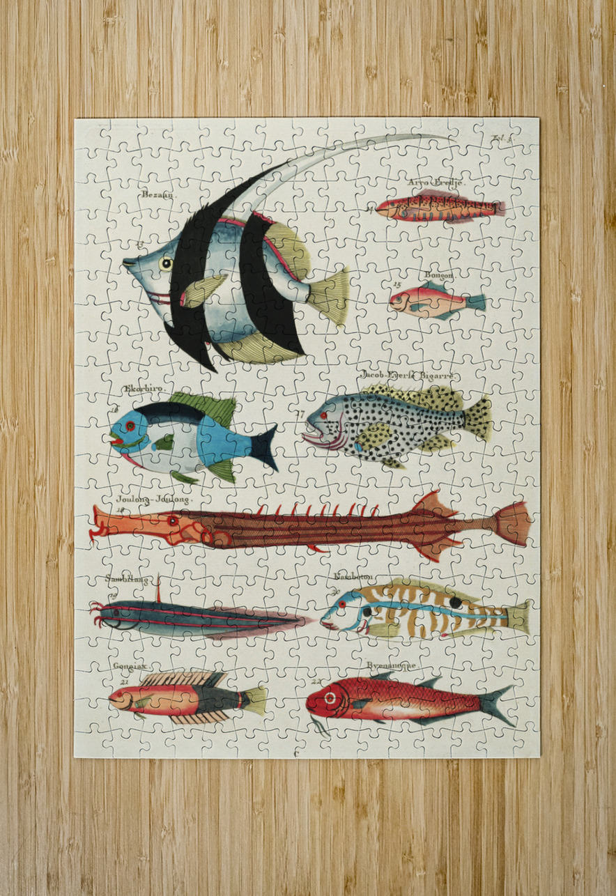 Colourful and surreal illustrations of fishes found in Moluccas Indonesia and the East Indies by Louis Renard 1678 -1746 from Histoire naturelle des plus rares curiositez de la mer des Indes 1754. IStockHistory com Puzzle