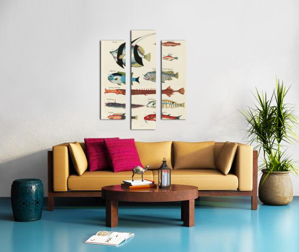 Colourful and surreal illustrations of fishes found in Moluccas Indonesia and the East Indies by Louis Renard 1678 -1746 from Histoire naturelle des plus rares curiositez de la mer des Indes 1754. Canvas print
