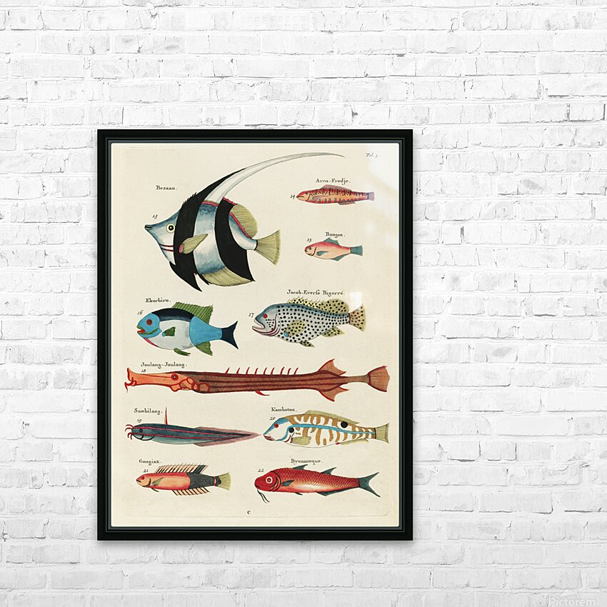 Colourful and surreal illustrations of fishes found in Moluccas Indonesia and the East Indies by Louis Renard 1678 -1746 from Histoire naturelle des plus rares curiositez de la mer des Indes 1754. Picture Frame Printing