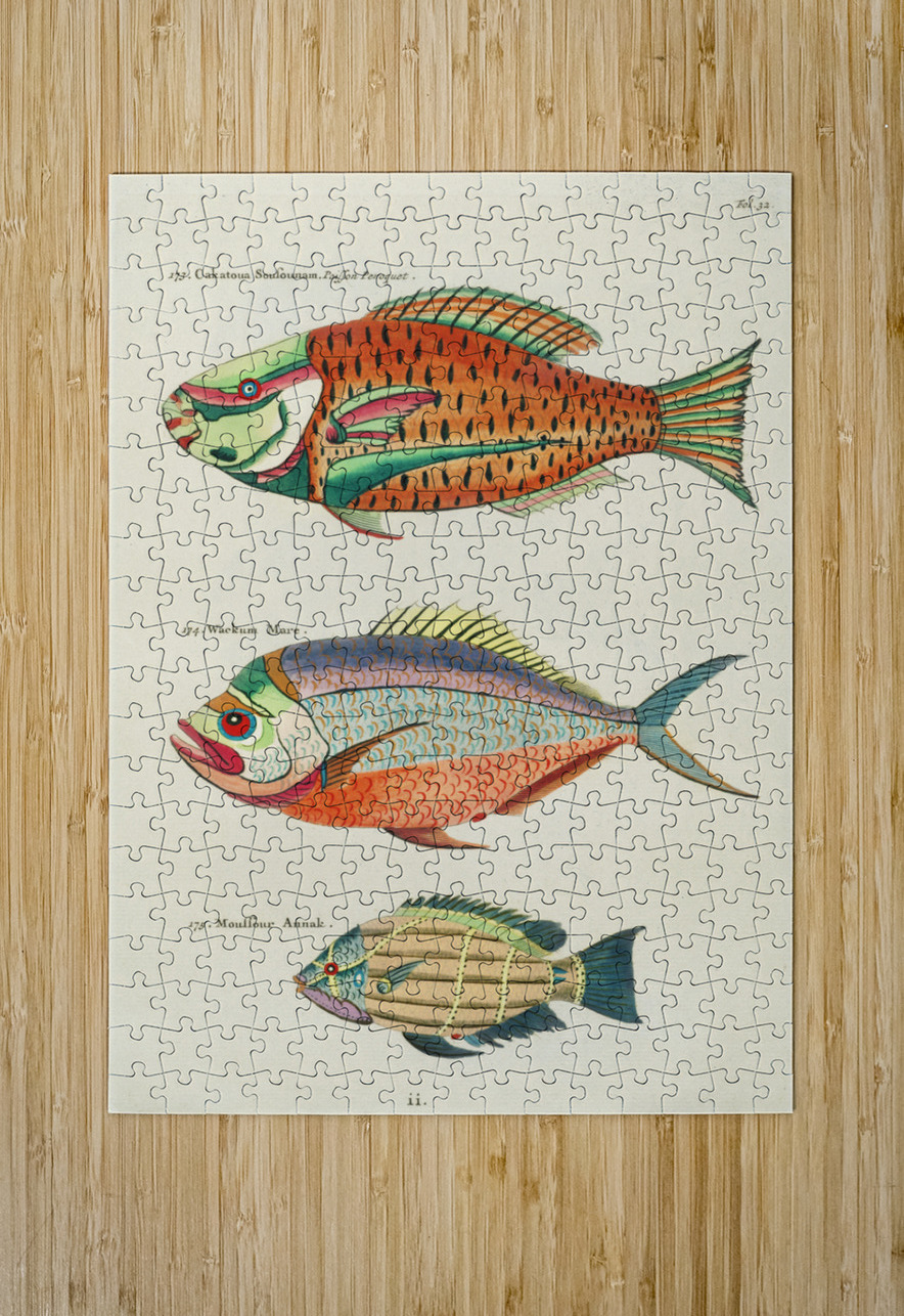 Colourful and surreal illustrations of fishes found in Moluccas Indonesia and the East Indies by Louis Renard 1678 -1746 from Histoire naturelle des plus rares curiositez de la mer des Indes 1754. IStockHistory com Puzzle