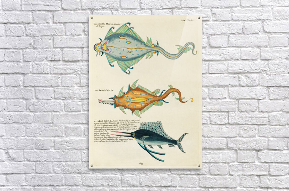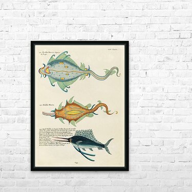 Get this artwork "Colourful and surreal illustrations of fishes found in Moluccas Indonesia and the East Indies by Louis Renard 1678 -1746 from Histoire naturelle des plus rares curiositez de la mer des Indes 1754." in a framed print.