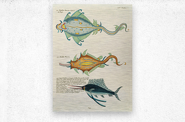 ABOUT THIS ARTWORK: COLOURFUL AND SURREAL ILLUSTRATIONS OF FISHES FOUND IN MOLUCCAS INDONESIA AND THE EAST INDIES BY LOUIS RENARD 1678 -1746 FROM HISTOIRE NATURELLE DES PLUS RARES CURIOSITEZ DE LA MER DES INDES 1754.