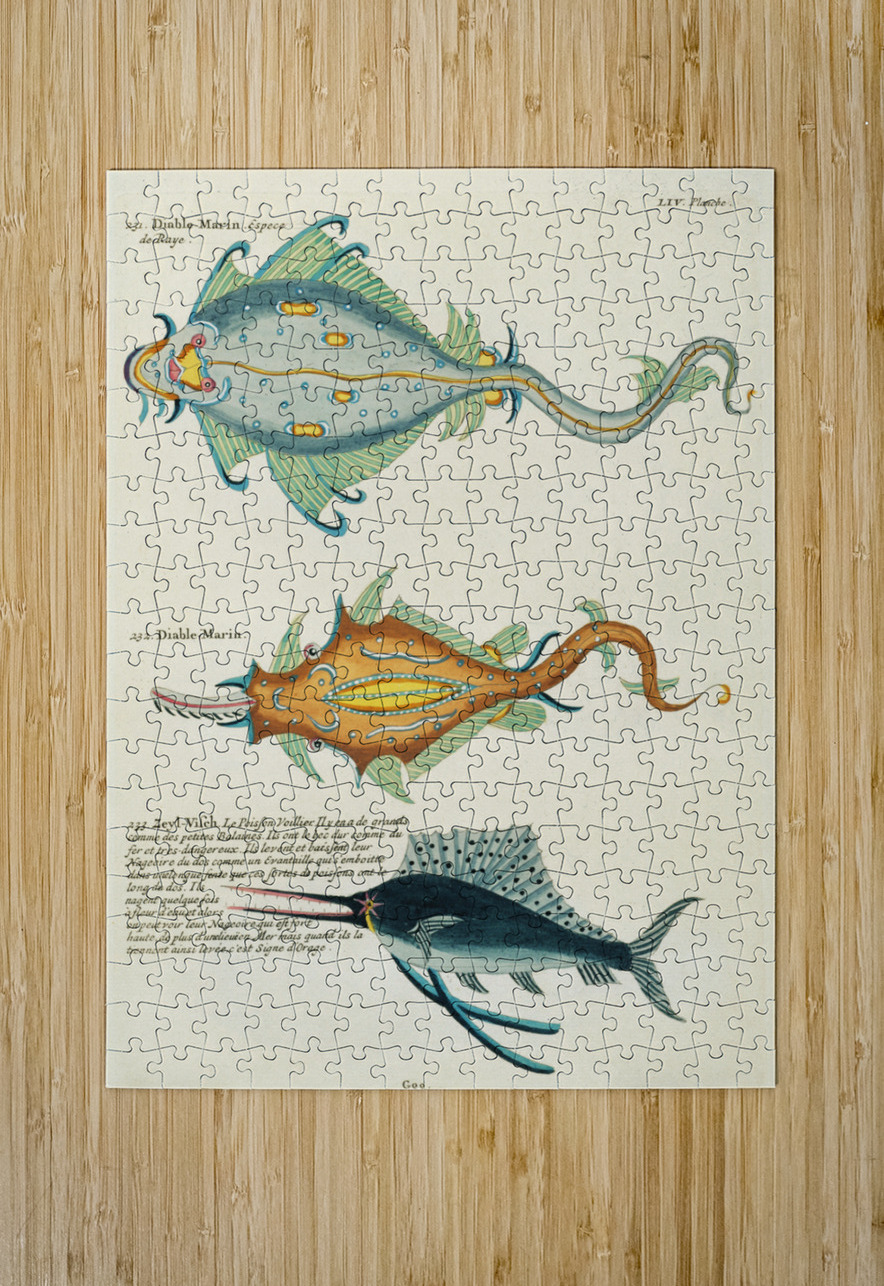 Colourful and surreal illustrations of fishes found in Moluccas Indonesia and the East Indies by Louis Renard 1678 -1746 from Histoire naturelle des plus rares curiositez de la mer des Indes 1754. IStockHistory com Puzzle