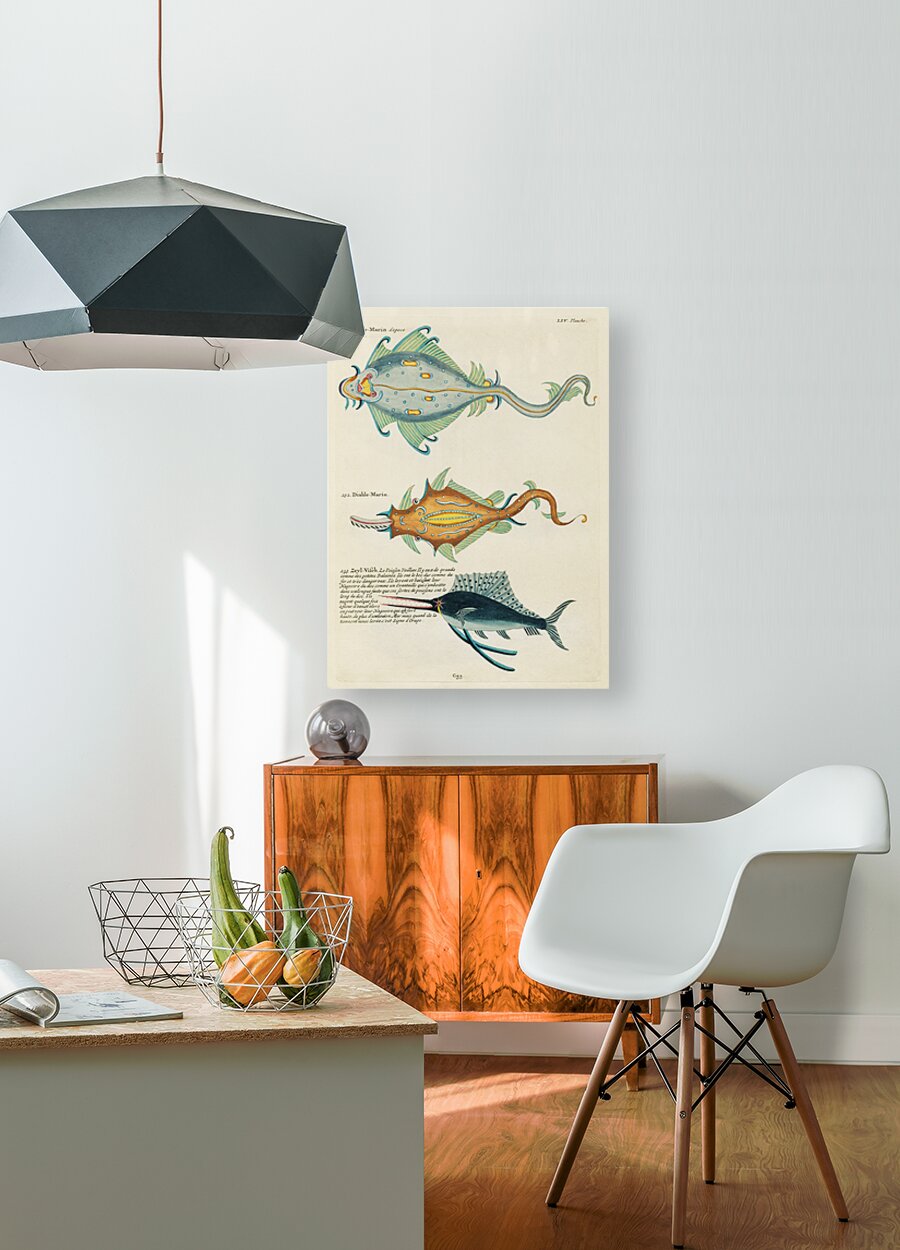 Colourful and surreal illustrations of fishes found in Moluccas Indonesia and the East Indies by Louis Renard 1678 -1746 from Histoire naturelle des plus rares curiositez de la mer des Indes 1754. Canvas print