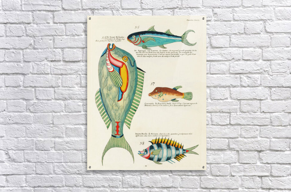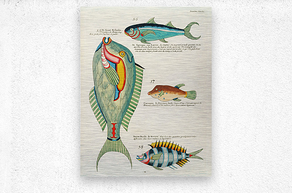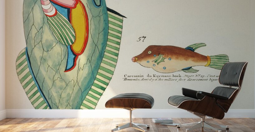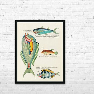 ABOUT THIS ARTWORK: COLOURFUL AND SURREAL ILLUSTRATIONS OF FISHES FOUND IN MOLUCCAS INDONESIA AND THE EAST INDIES BY LOUIS RENARD 1678 -1746 FROM HISTOIRE NATURELLE DES PLUS RARES CURIOSITEZ DE LA MER DES INDES 1754.