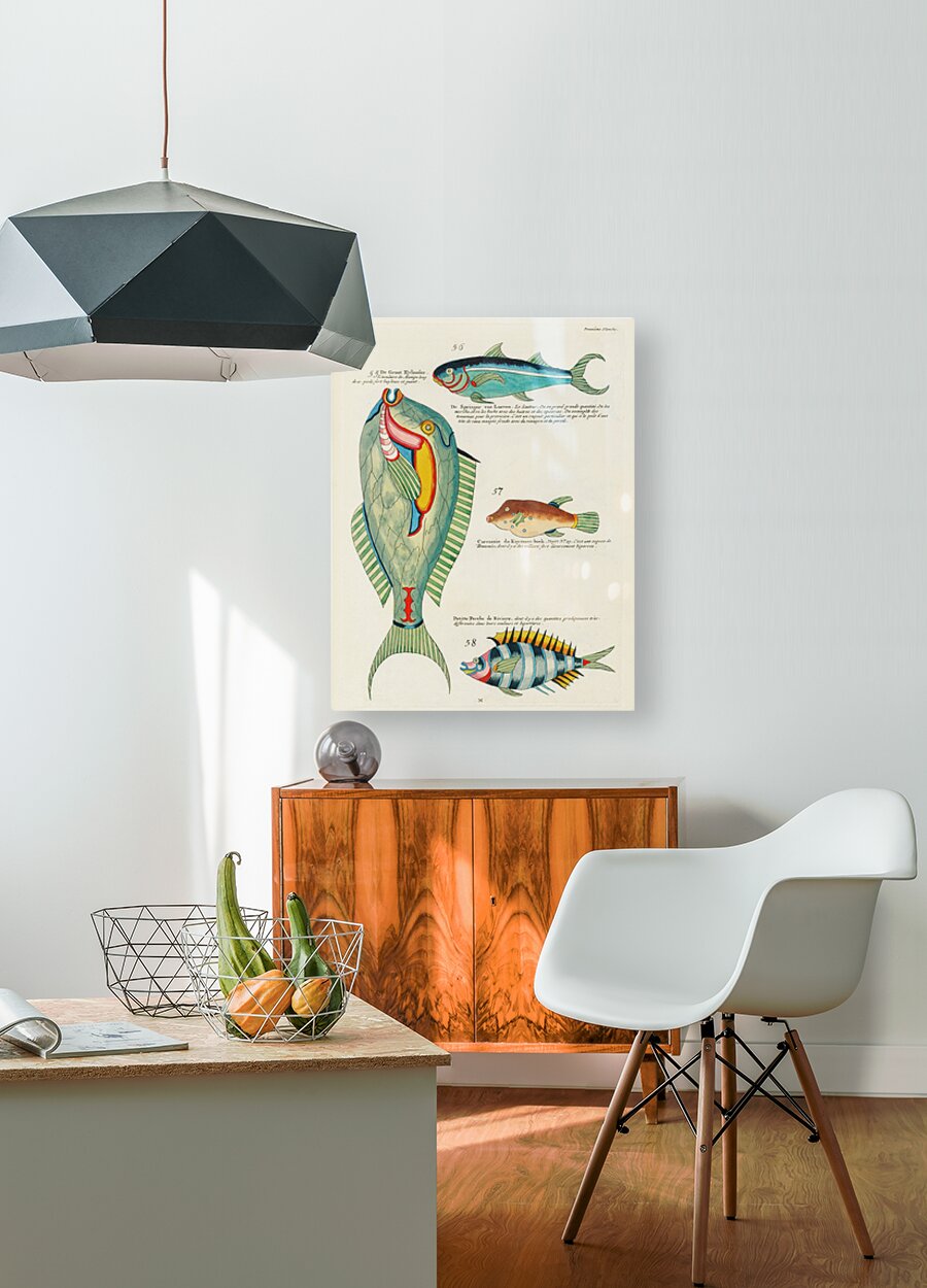 Colourful and surreal illustrations of fishes found in Moluccas Indonesia and the East Indies by Louis Renard 1678 -1746 from Histoire naturelle des plus rares curiositez de la mer des Indes 1754. Canvas print