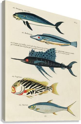 Colourful and surreal illustrations of fishes found in Moluccas Indonesia and the East Indies by Louis Renard 1678 -1746 from Histoire naturelle des plus rares curiositez de la mer des Indes 1754. Canvas print