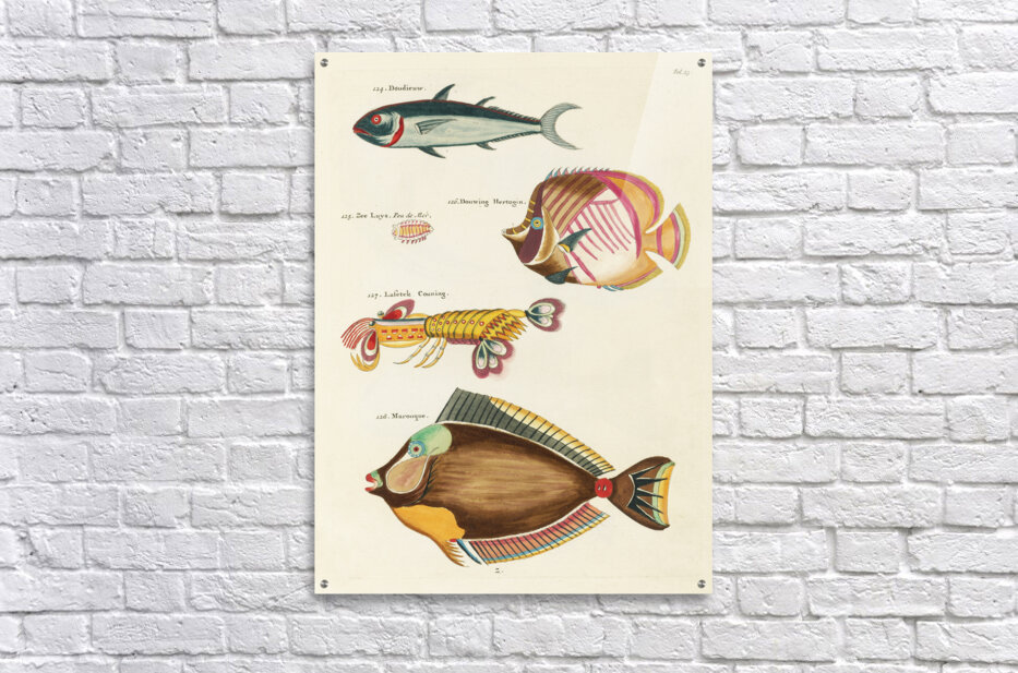 Get this artwork "Colourful and surreal illustrations of fishes and lobster found in Moluccas Indonesia and the East Indies by Louis Renard 1678 -1746 from Histoire naturelle des plus rares curiositez de la mer des Indes 1754." in a framed print.