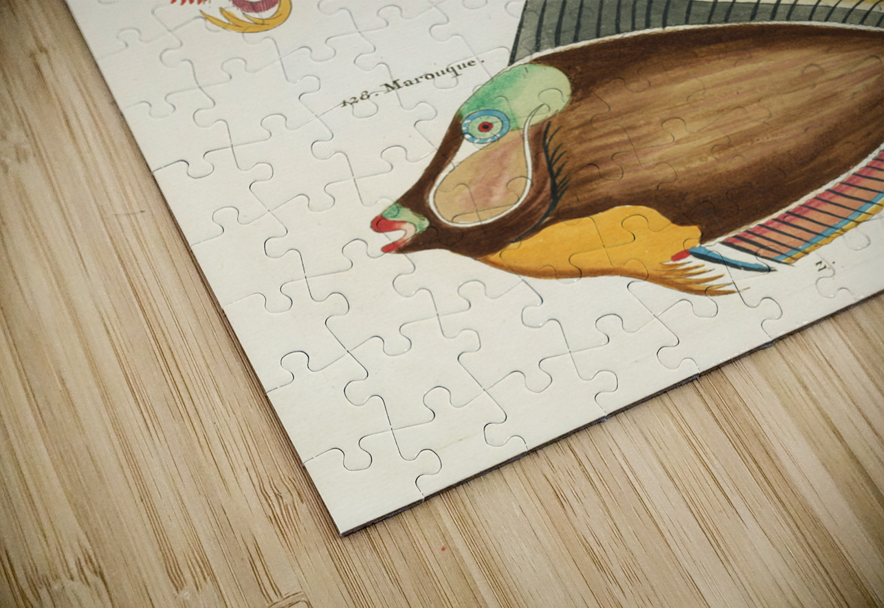 Colourful and surreal illustrations of fishes and lobster found in Moluccas Indonesia and the East Indies by Louis Renard 1678 -1746 from Histoire naturelle des plus rares curiositez de la mer des Indes 1754. IStockHistory com Puzzle printing