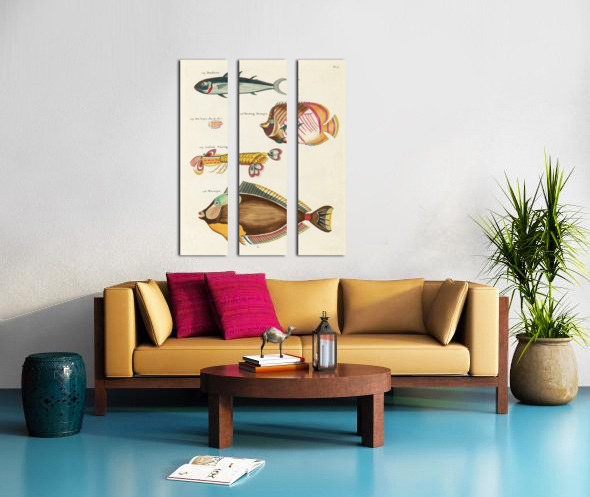 Colourful and surreal illustrations of fishes and lobster found in Moluccas Indonesia and the East Indies by Louis Renard 1678 -1746 from Histoire naturelle des plus rares curiositez de la mer des Indes 1754. Canvas print