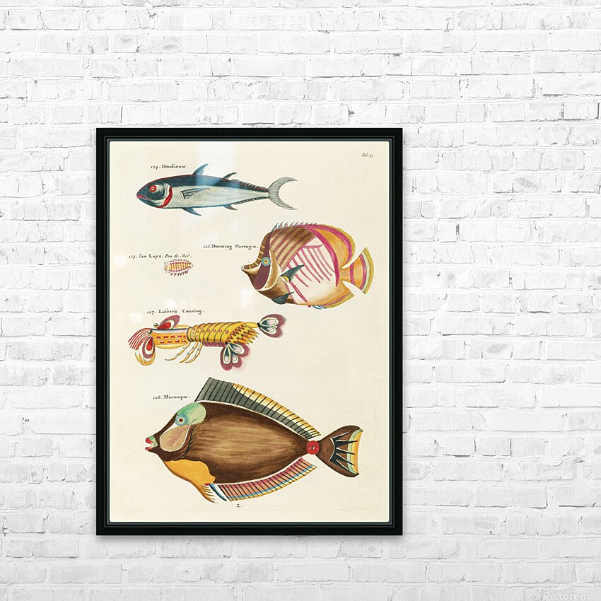 Colourful and surreal illustrations of fishes and lobster found in Moluccas Indonesia and the East Indies by Louis Renard 1678 -1746 from Histoire naturelle des plus rares curiositez de la mer des Indes 1754. Picture Frame Printing
