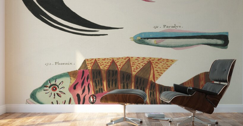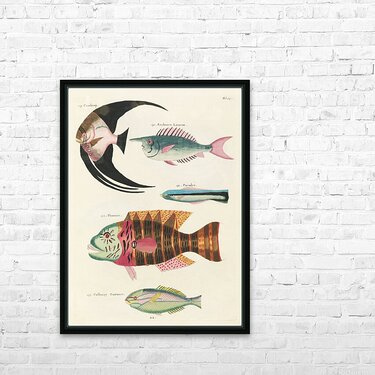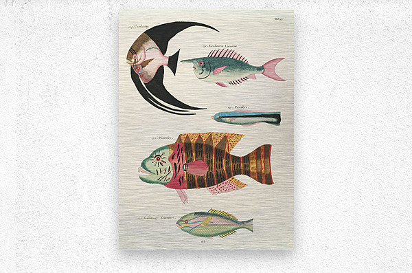 ABOUT THIS ARTWORK: COLOURFUL AND SURREAL ILLUSTRATIONS OF FISHES FOUND IN MOLUCCAS INDONESIA AND THE EAST INDIES BY LOUIS RENARD 1678 -1746 FROM HISTOIRE NATURELLE DES PLUS RARES CURIOSITEZ DE LA MER DES INDES 1754.