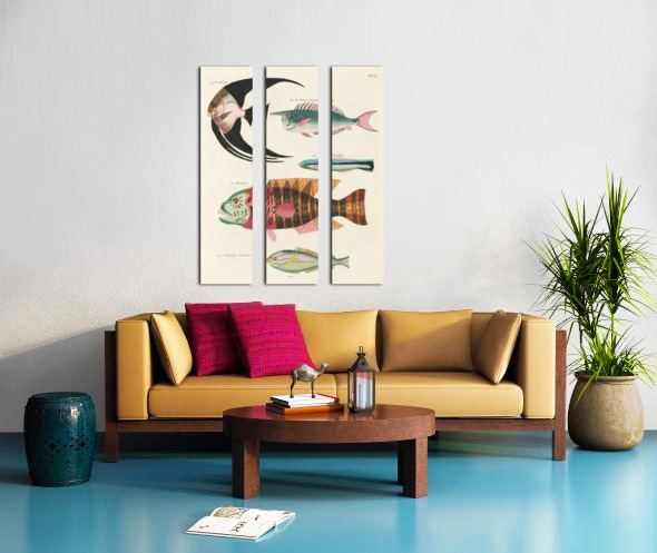 Colourful and surreal illustrations of fishes found in Moluccas Indonesia and the East Indies by Louis Renard 1678 -1746 from Histoire naturelle des plus rares curiositez de la mer des Indes 1754. Canvas print